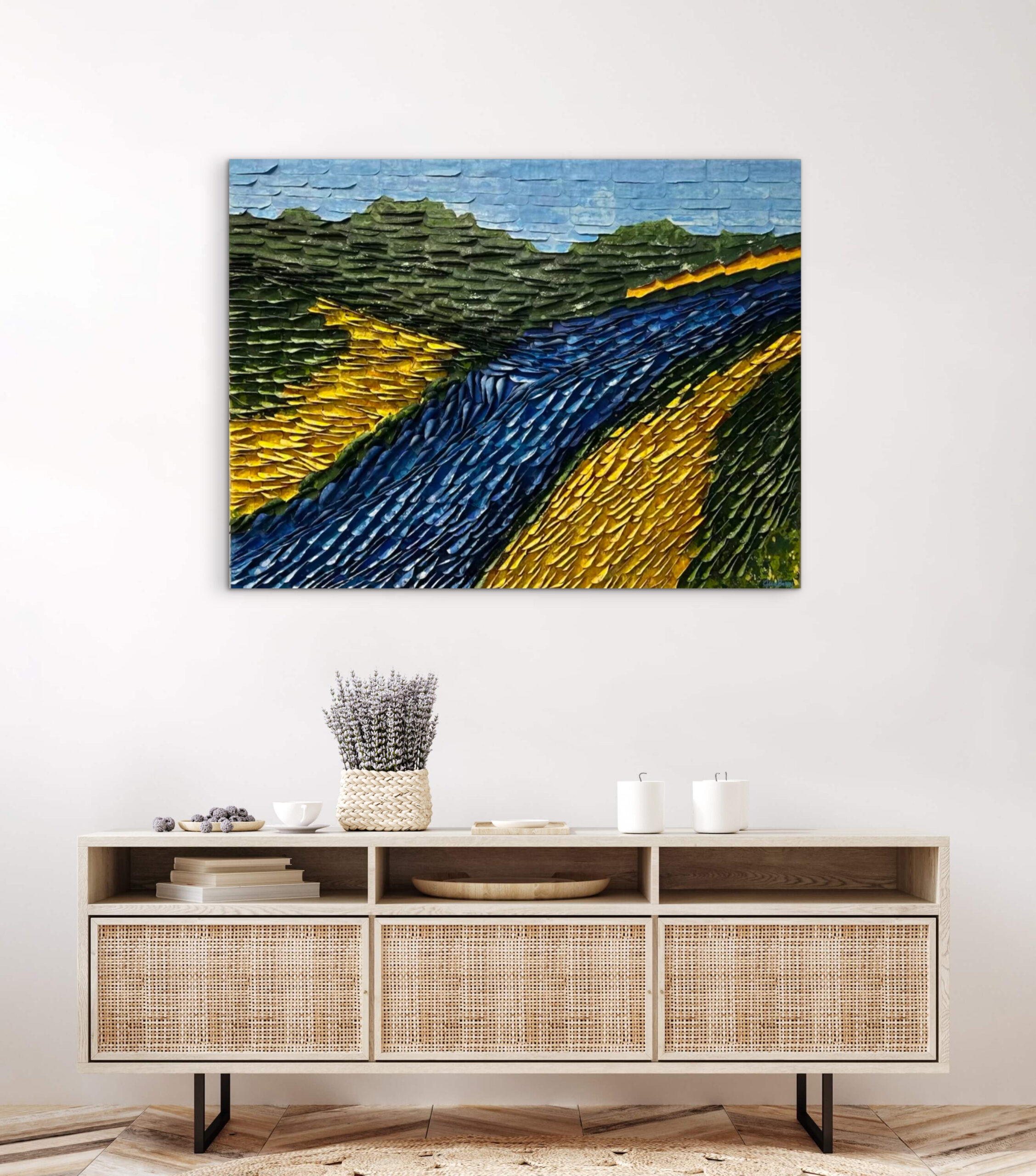 Sculpted Canvas & painted with acrylic paint.